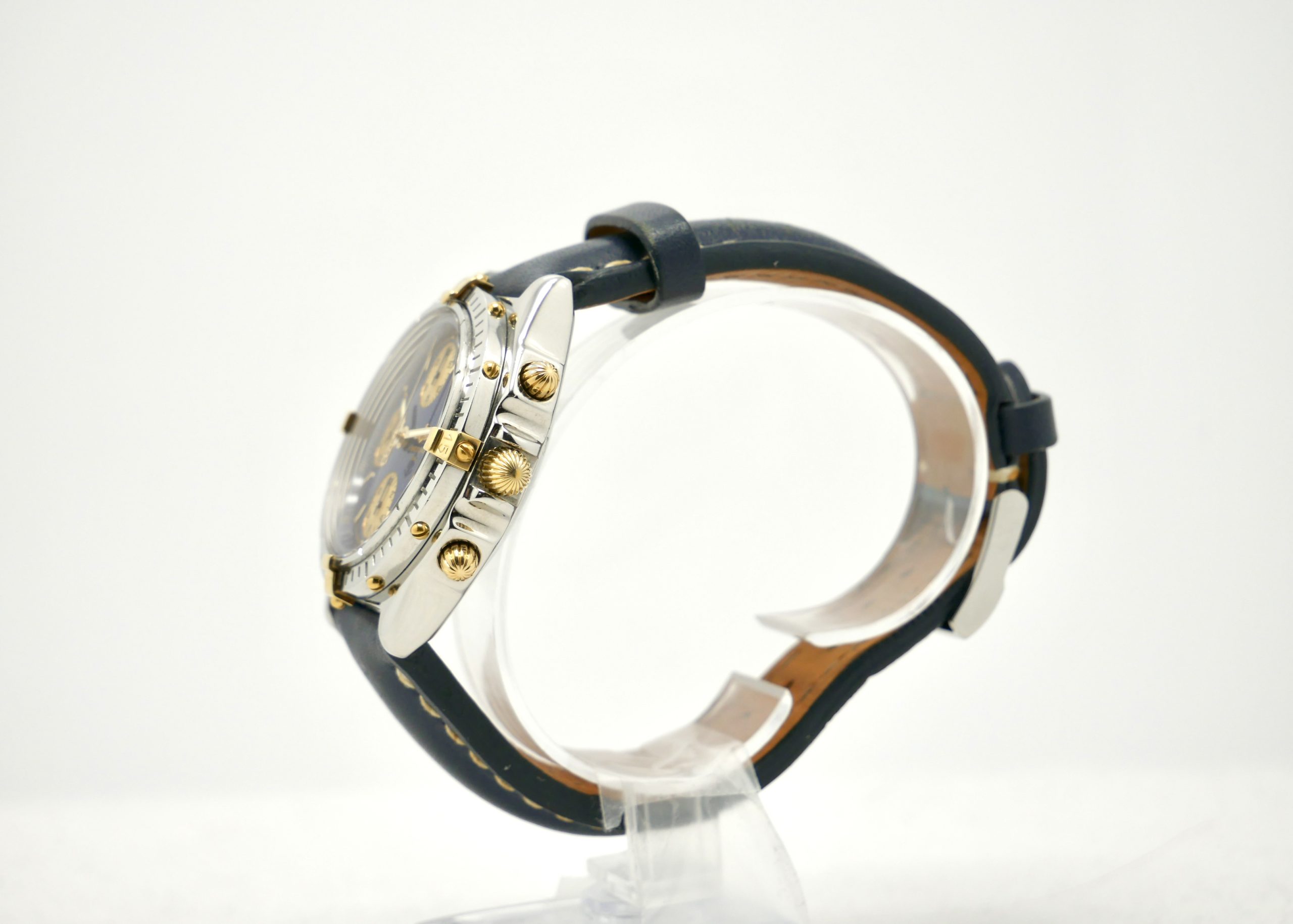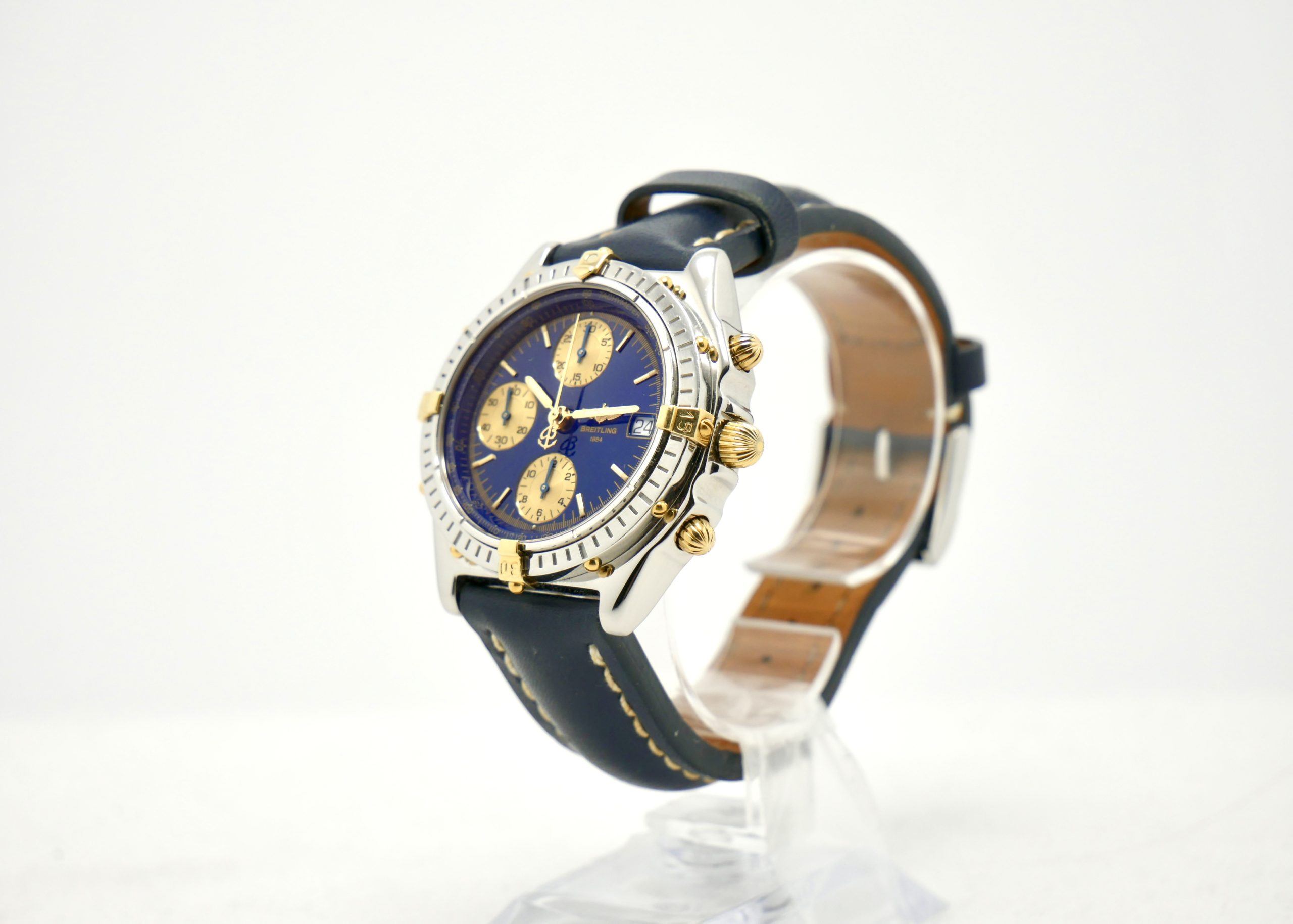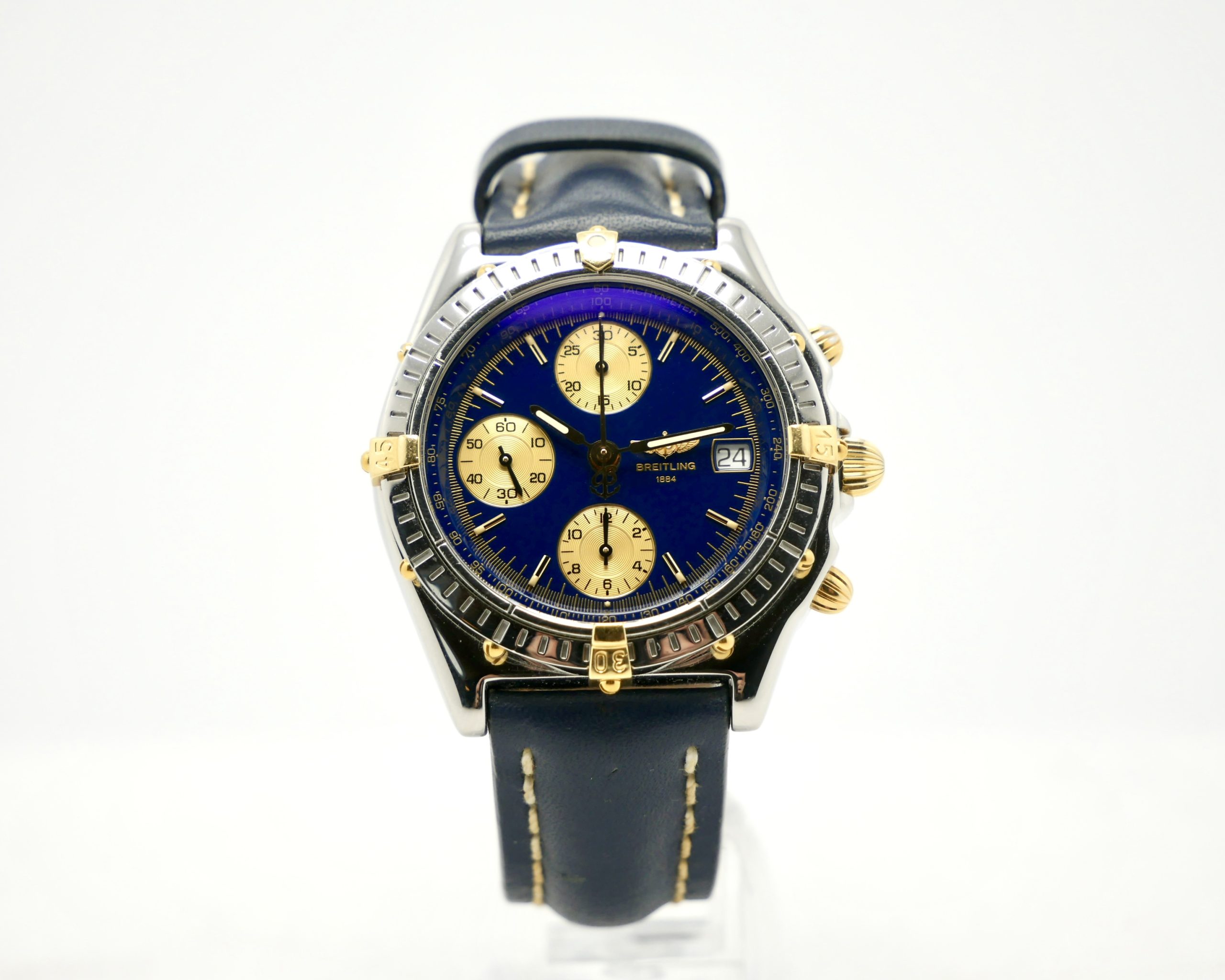 Chronomat on malli, joka määritteli Breitlingin modernin aikakauden 1980–1990-luvuilla. Kellon syvänsininen taulu yhdistettynä kultasävyisiin yksityiskohtiin luo näyttävän mutta elegantin kokonaisuuden, joka on hyvin aikakaudelleen tunnusomainen ja tekee kellosta erottuvan ilman liiallista pröystäilyä. Väriyhdistelmä henkii luksusta ja urheilullisuutta samassa paketissa.