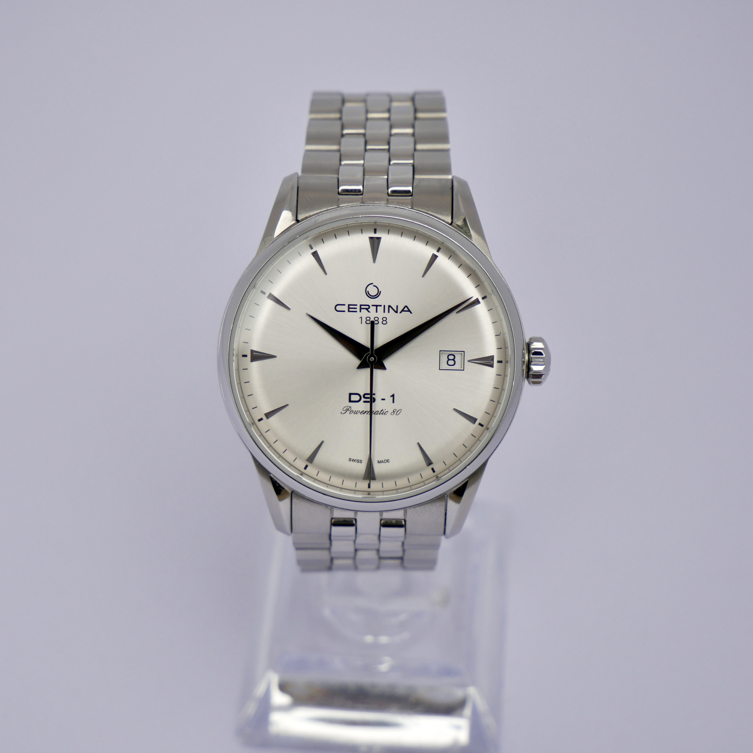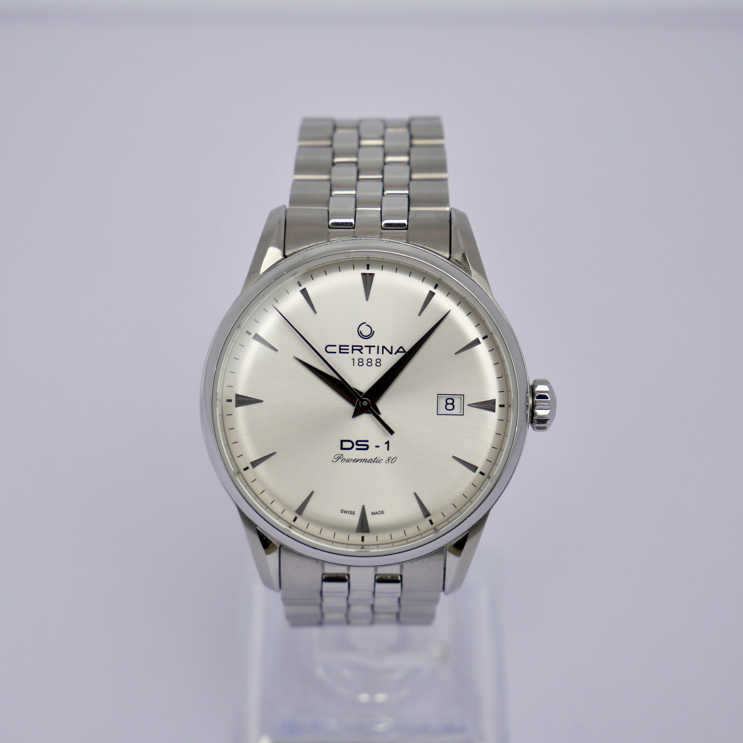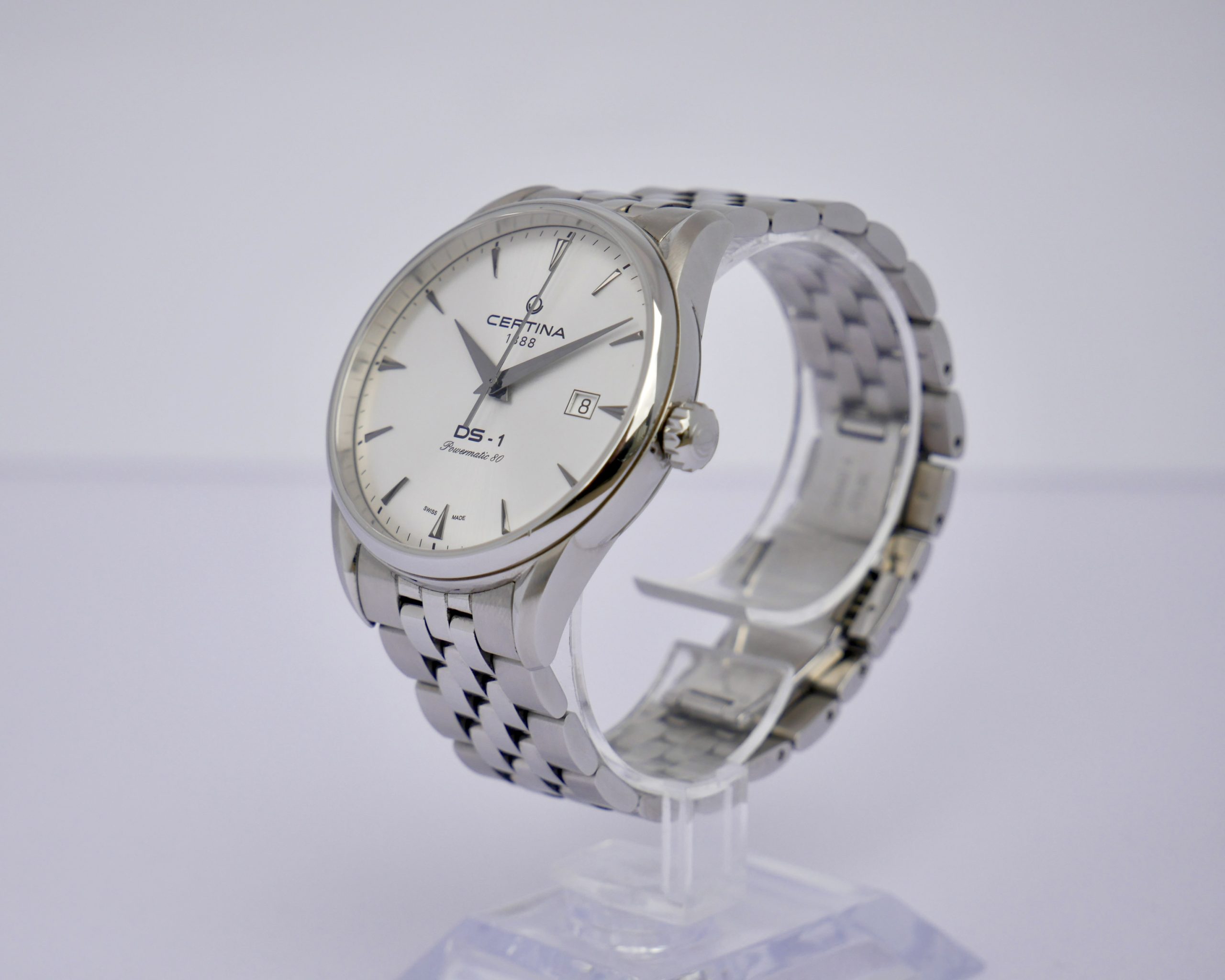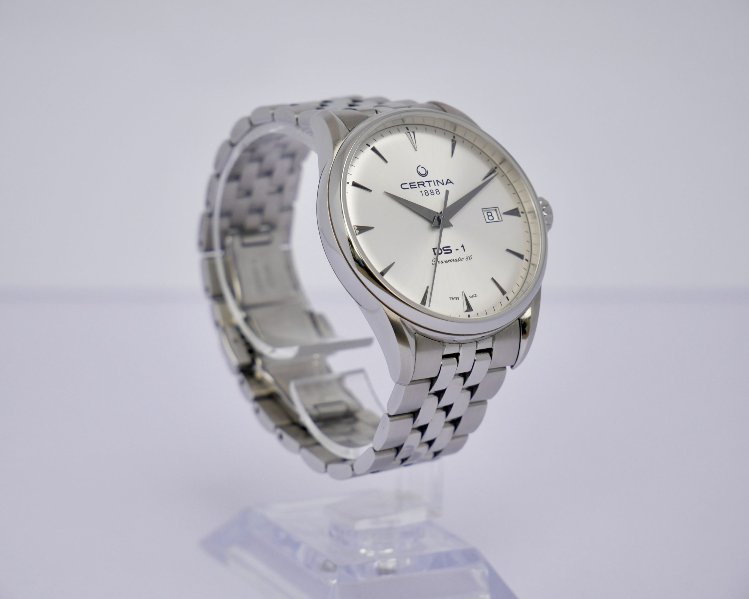 Elegantti ja luotettava Certina DS-1 Powermatic 80, joka jatkaa legendaarisen DS (Double Security) -järjestelmän perintöä aina 1960-luvulta saakka. Hopeanvärinen sunburst-taulu tuo hienostuneen ilmeen, joka elää valon mukaan ja tekee kellosta erinomaisen kumppanin niin arkeen kuin juhlaan.