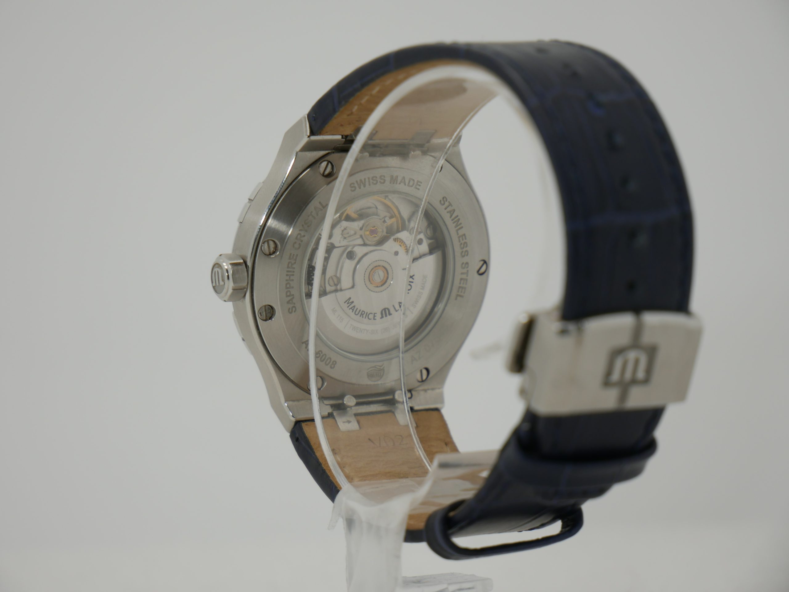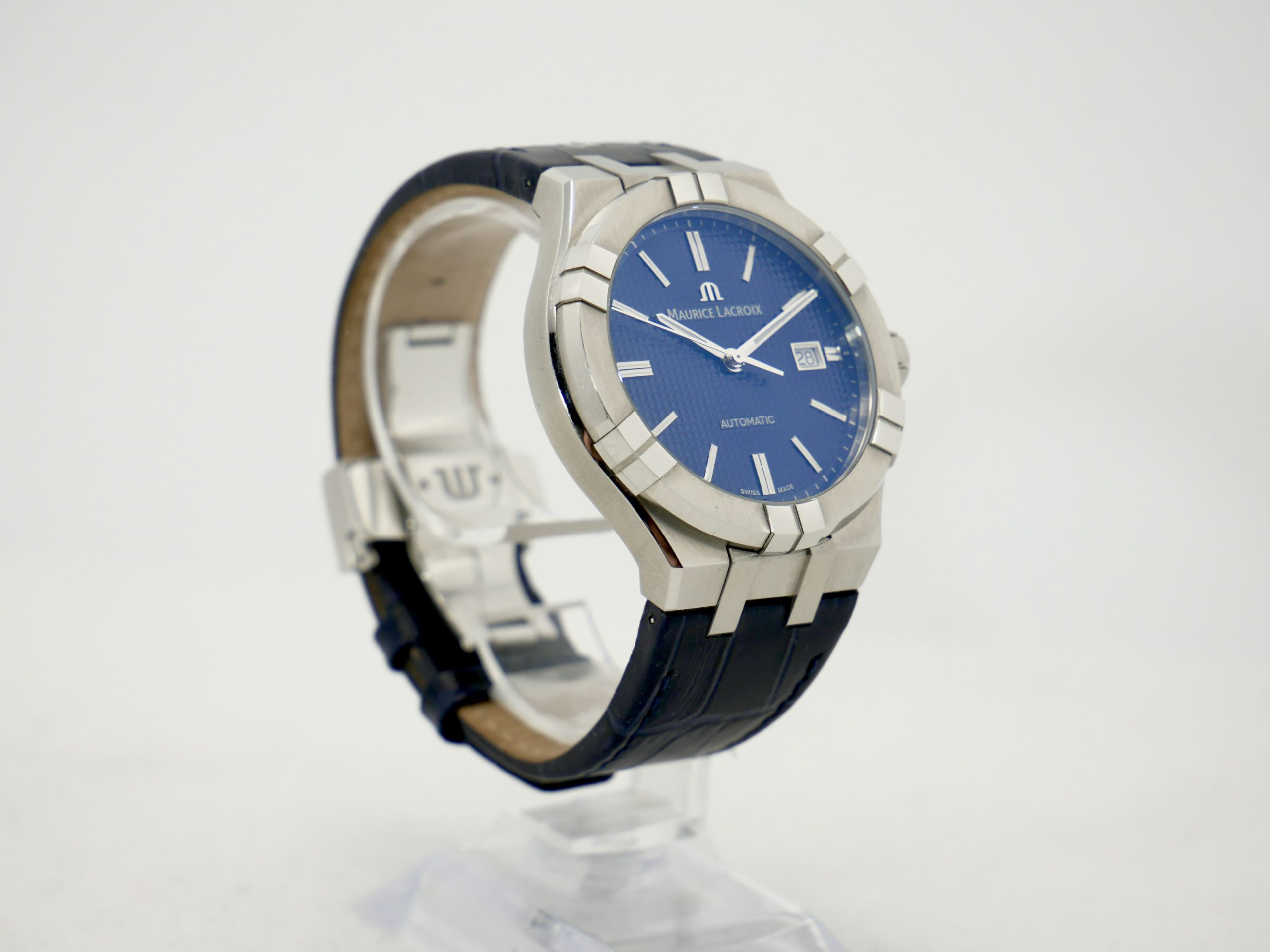 Aikon-malli tunnetaan tunnistettavasta kuorimuotoilustaan ja kuusiosaisesta kehästä, joka antaa kellolle urheilullisen mutta samalla erittäin elegantin ilmeen. Tässä yksilössä syvänsininen “Clous de Paris” -kuvioitu taulu luo upean valon leikittelyn ja tekee kellosta erittäin näyttävän ranteessa.