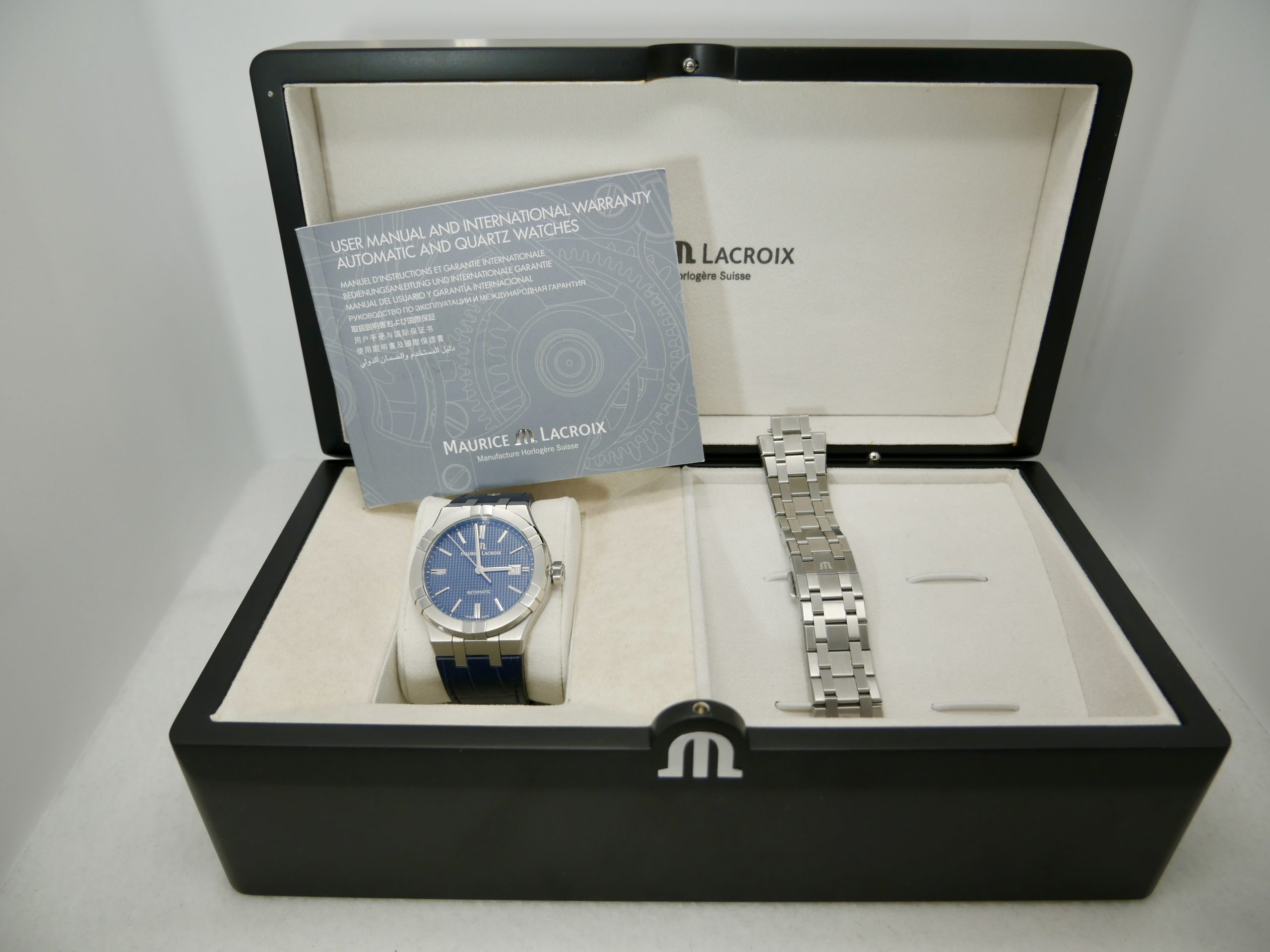 Myynnissä tyylikäs ja moderni Maurice Lacroix Aikon Automatic, joka on yksi merkin tunnetuimmista ja suosituimmista malleista. Tämä yksilö on Full Set (06/2021) ja mukana tulevat alkuperäinen laatikko, kaikki paperit sekä kaksi ranneketta: teräsranneke ja nahkaranneke.
