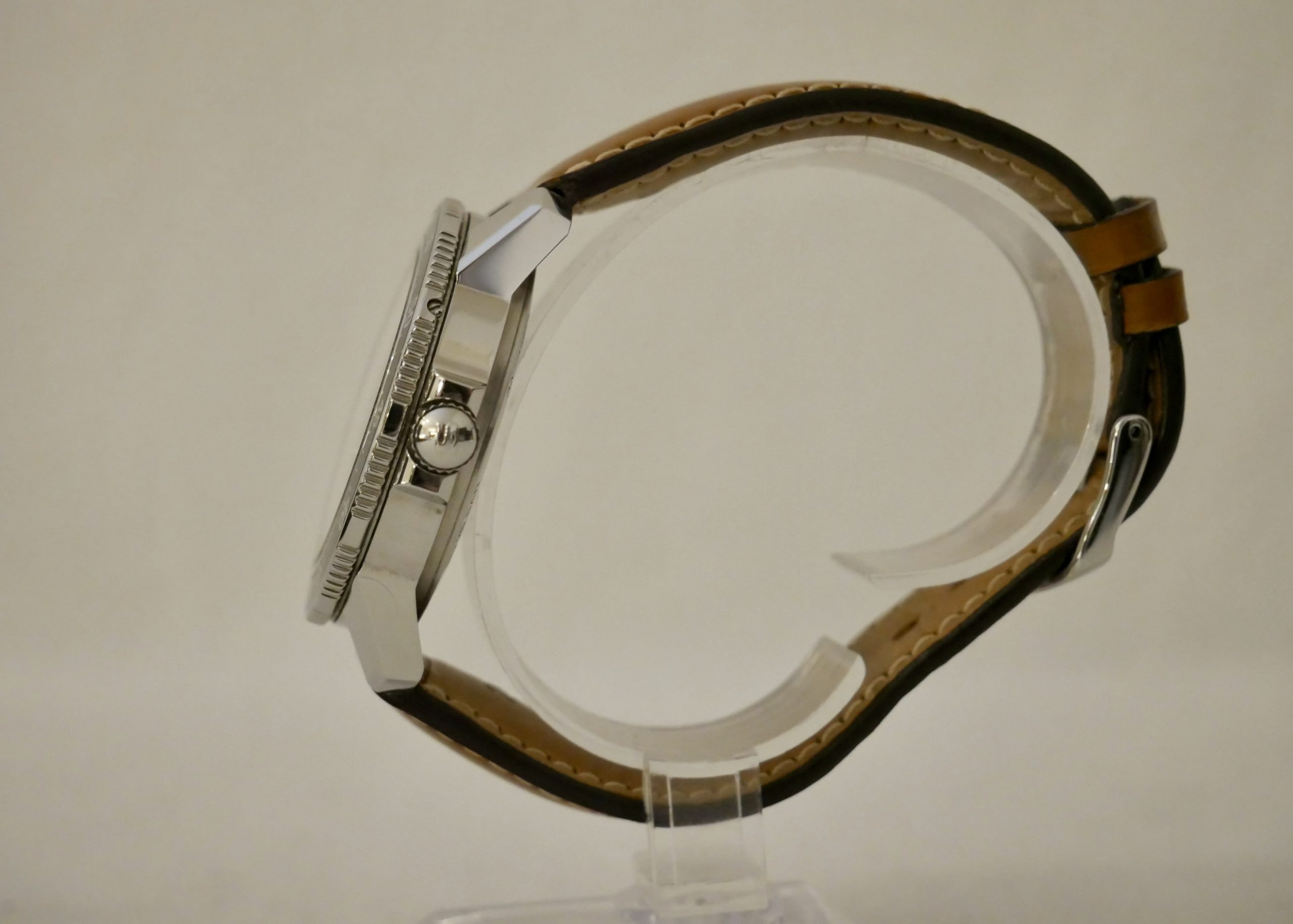 Kellossa klassinen musta pilot-bezel ja erittäin helposti luettavat indeksit sekä viisarit.